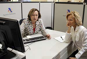 Elena Salgado, en una oficina de la Agencia Tributaria (Foto: Efe).